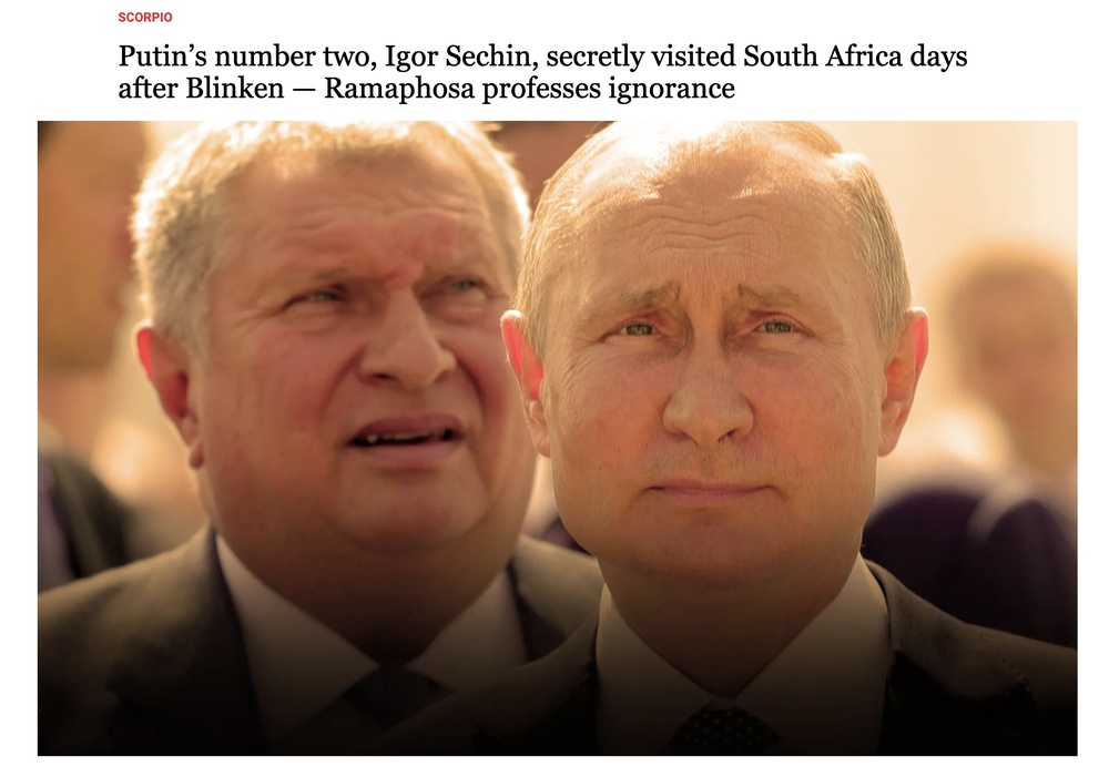 А в местной газете заметка — Игорь Сечин тайно посетил ЮАР.