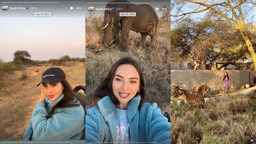 В августе 2022 года у Альбины в инстаграме путешествие в Южную Африку — прогулки с антилопами и слонами.