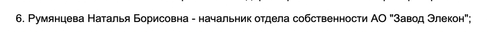 Канфинанс зарегистрирован на коллегу Матиной — Румянцеву Наталью Борисовну, начальницу отдела собственности на Элеконе.