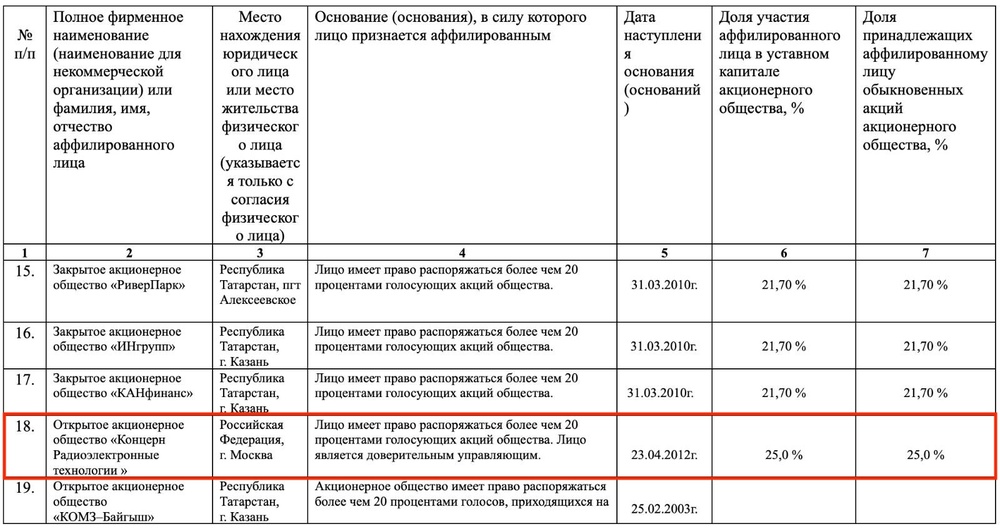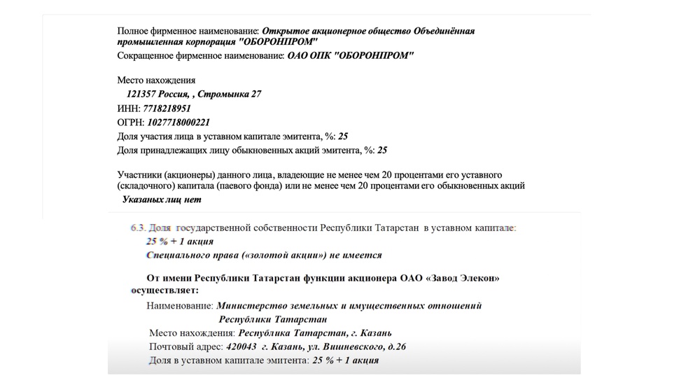 Другой пример: Особое Конструкторское Бюро Кабельной Промышленности. На сайте КРЭТ оно было указано как предприятие холдинга, все акции принадлежали им и Росимуществу.