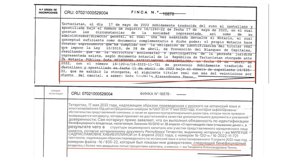 Идея переписывать недвижимость на родственников не новая, это типичное поведение путинского чиновника, который пытается спрятать украденное — в первую очередь от санкций. Но за идею записать виллу на 70-летнюю сестру, мы ставим Николаю Колесову три с минусом. Ведь Людмила Тэнно сама оборнщица. Во-первых, в испанских документах она указана, как бенефициарный владелец завода Элекон.