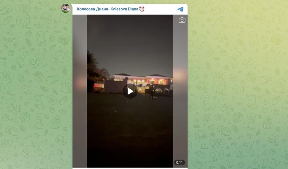 А вот на этом видео не очень понятно, что происходит, но Диана Колесова снимает какой-то дом в Дубае. Темно, видно плохо, но она явно пытается попасть внутрь. Дом явно не случайный, на более старом видео мы видим, что она сама там точно была — эти же терракотовые стены и арки видны в отражении кузова микроавтобуса, куда она садиться с дочкой.