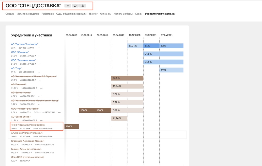 Фирма располагается в здании завода Элекон в Казани, записана на номиналов, но прошлой собственницей была знакомая нам старшая сестра Колесова — Людмила Тэнно.