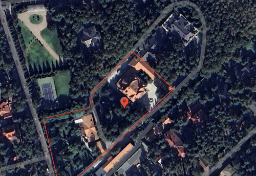 Вот он, совсем недалеко от воды, наш филиал оборонного завода Элекон. Охраняется это место и правда как серьезное оборонное предприятие: мы насчитали по меньшей мере 10 камер видеонаблюдения. В доме три этажа, подземная парковка, огромные террасы. Площадь виллы — 1200 квадратных метров. Перед домом большой бассейн, он заполнен водой и прямо сейчас готов принимать отдыхающих.
