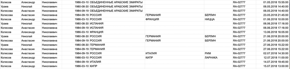 Судя по данным о пересечении границы, Диана была права. Николай Колесов действительно улетел в тот день в Дубай, и именно на этом самолете. С ним на борту, была его племянница Екатерина Блохина и Екатерина Игнатова, супруга главы Ростеха Сергея Чемезова.