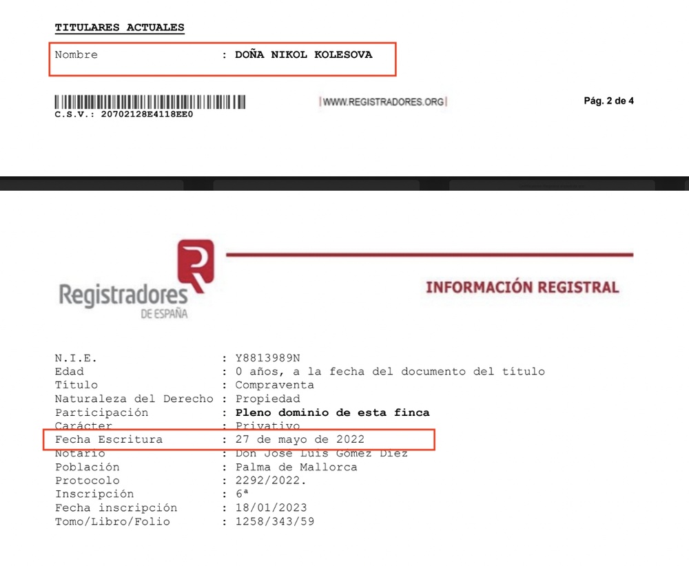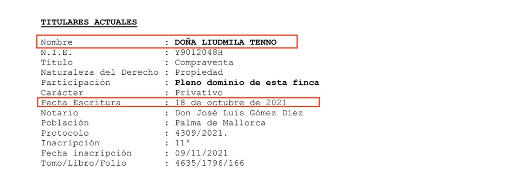 С этой частью пальма-де-майорского оборонного кластера произошла примерно такая же история как и с виллой Элекона, переписанной на четырехлетнюю дочь Колесова. Этот дом переписали с Тамбовского завода Электоприбор на Людмилу Тэнно, старшую сестру Николая Колесова. Она получила испанскую недвижимость за несколько месяцев до начала войны — в октябре 2021 года.