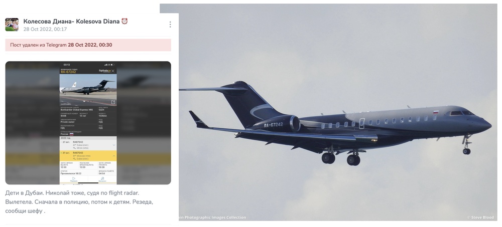 Майорка, Дубай, Москва, Ялта, Казань. Выглядит как очень сложная и запутанная логистика. Что же делать человеку, которому, чтобы отдохнуть, надо перемещаться между всеми этими местами? Конечно же нужен частный самолет. Его упоминания тоже можно найти в телеграме Дианы Колесовой. Это Bombardier Global Express, стоит 20 миллионов долларов.