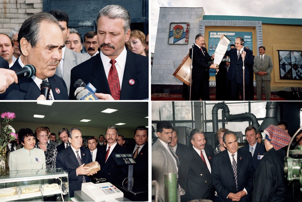 А в 1997 году на Элеконе случилось чудо (по крайней мере, так написано на сайте завода). В это трудное время Элекон возглавил Николай Александрович Колесов. Вот он, солидный и усатый, водит по заводу президента Татарстана Минтимера Шаймиева.