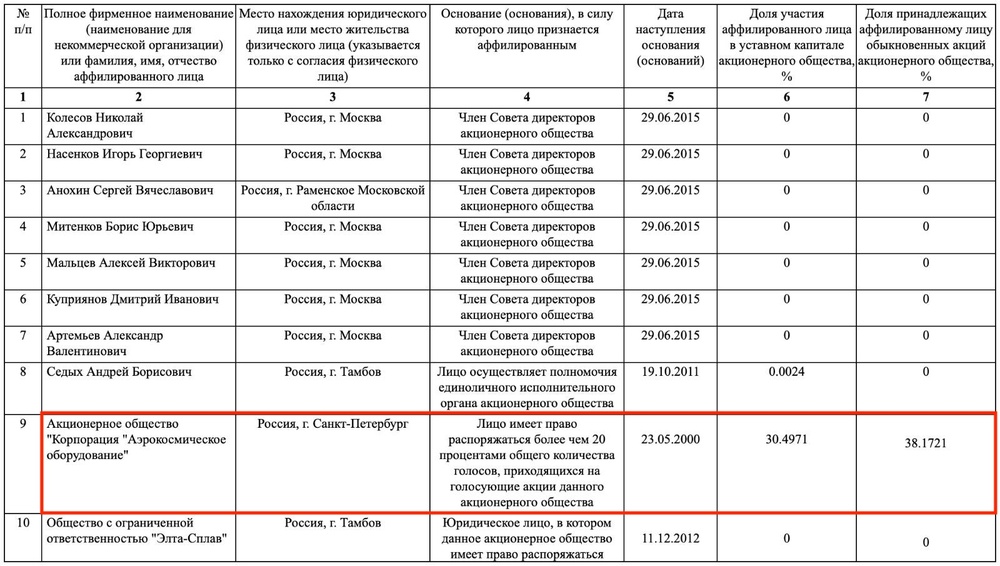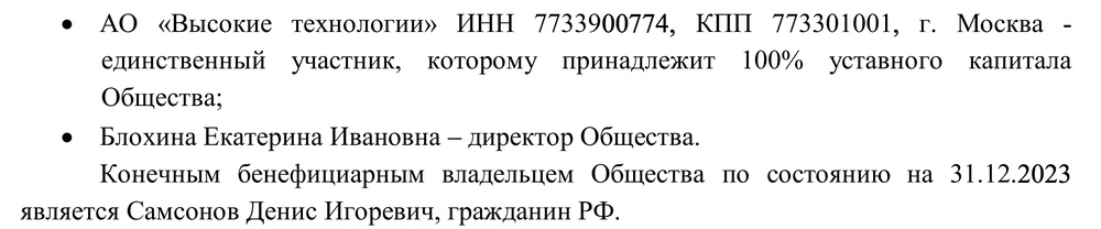 Источник: бухгалтерская отчетность АО Высокие Технологии, фамилия Самонова указана с опечаткой»