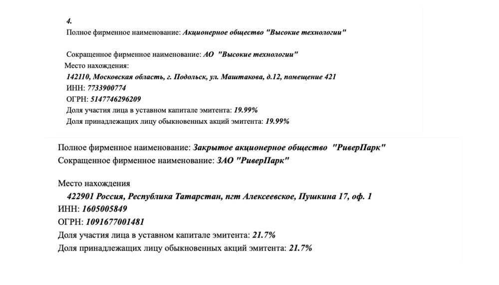 Часть акционеров, полная версия по ссылке