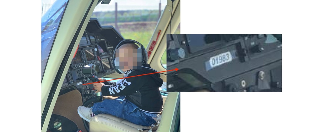 Зато на вертолете — регулярно. Вот на этой фотографии сын Колесова сидит прямо за штурвалом, а рядом несложно разглядеть наклеечку с регистрационным номером 01983.