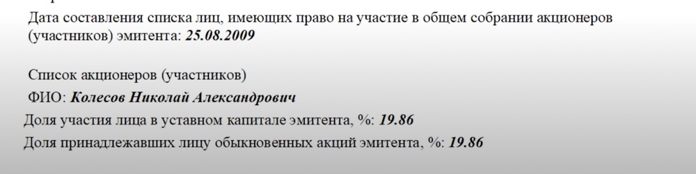 Это на 50% структура Ростеха, а на 23% структура РИАЛИНВЕСТМЕНТА, как мы выяснили, личной фирмы Николая Колесова.