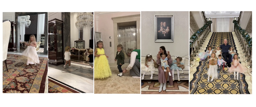 Просто посмотрите на домашние интерьеры, которые случайно попадают в кадр: дворцовые интерьеры, семейные портреты, мраморные лестницы с коврами, домашние лифты.