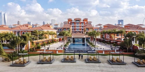 Мы нашли это жилой комплекс в Дубаи, он называется «XXII CARAT VILLAS», располагается на острове Пальма-Джумейра. Сравниваем с фотографиями и видео в интернете: угадывается тот же самый бассейн, у которого Диана Колесова позирует в пилотке с георгиевской лентой.
