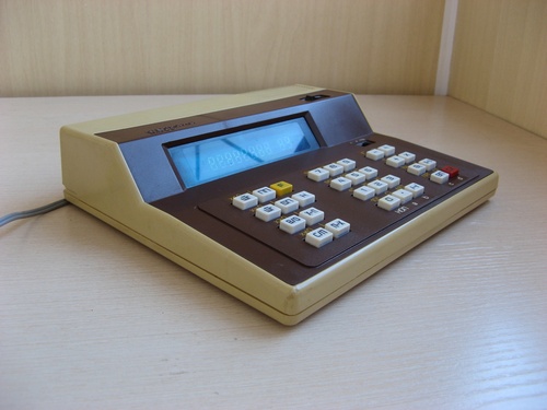 Или вот такой один из первых советских калькуляторов МК-56 — это тоже Элекон сделал. На нем можно не просто складывать что-то и вычитать, но и писать программы симулирующие посадку на луну.