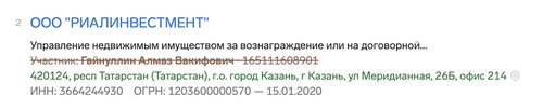 Формально владельцем РИАЛИНВЕСТМЕНТ числится Алмаз Гайнуллин из Казани.