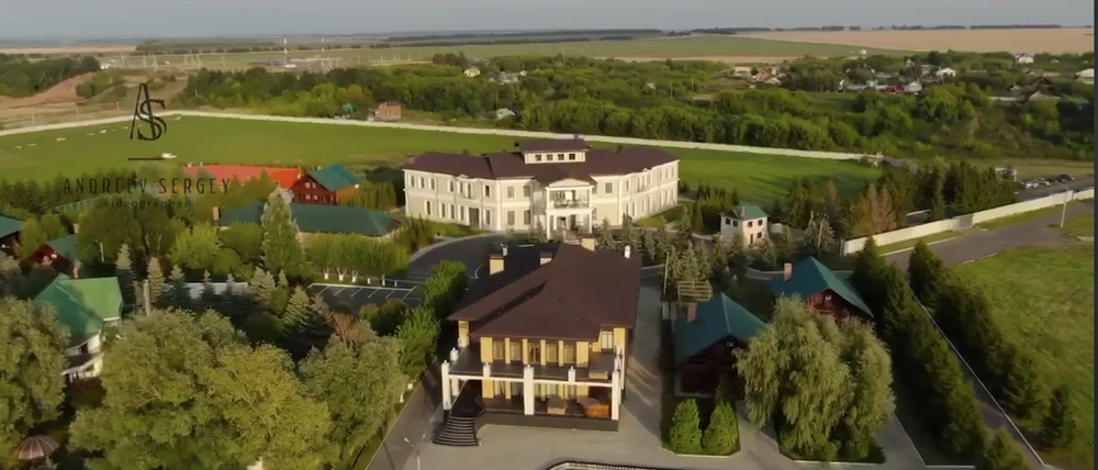 На территории четыре гостевых дома: самый большой — площадью 2350 квадратных метров. Есть еще бани, солярий, тир, боулинг.