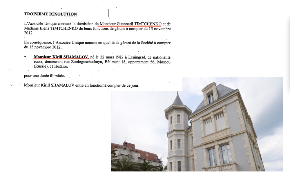 А иногда схемы того, как Тимченко спонсирует Путина еще проще. В 2012 году именно Тимченко переписывает на Кирилла Шамалова виллу во французском Биаррице.