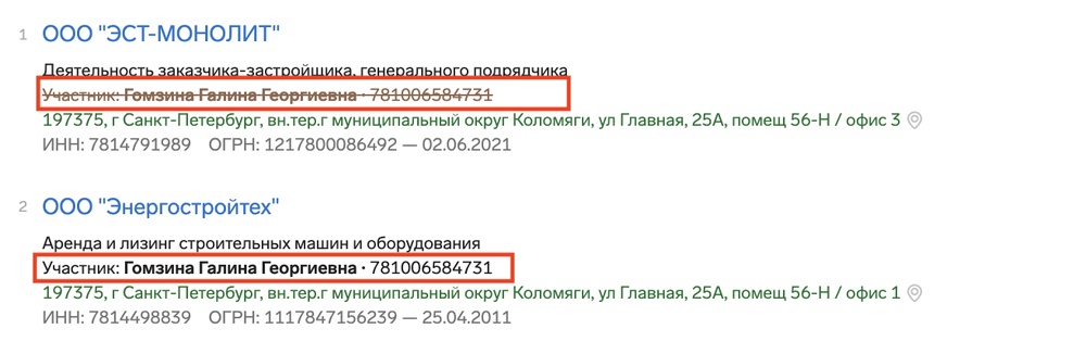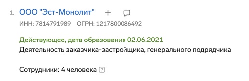 Со второй фирмой Кикотя достаточно похожая история. Но там бизнес подаёт чуть больше признаков жизни, чем «Эст-Монолит»: она давно существует, там много сотрудников, какая-то деятельность, и не так всё кустарно, как в прошлом случае.