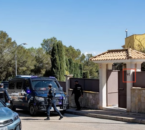 А происходит обыск! Человечки, которых мы видели сверху — это сотрудники национальной полиции испании, вооруженные, с щитами, масками, все как положено — они входят в дом и осматривают каждое помещение.
