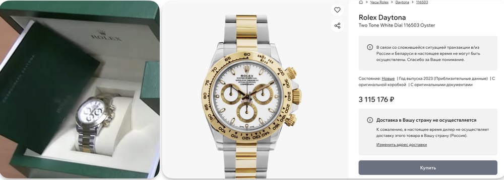 Еще часы, уже на столе: в этой коробке Rolex Daytona 3 млн рублей.